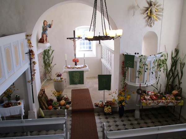 Die Herbstzeit hat mit der Ernte in unseren Gärten und auf den Feldern begonnen. Für unsere evangelische Kirchengemeinde Rüdersdorf-Kraftsdorf beginnt damit auch die Zeit der Erntedank-Gottesdienste in unseren Kirchen. Für alles, was wir zum Leben brauchen und was der Schöpfer im Laufe des Jahres hat wachsen lassen, aber auch für alles Gute in unserem Leben, dafür wollen wir mit einem besonderen Gottesdienst von Herzen danken. Von Ende September bis Anfang Oktober wurde dazu in unsere Kirchen in Niederndorf, Mühlsdorf, Kraftsdorf, Pörsdorf, Reichardtsdorf, Harpersdorf und Rüdersdorf eingeladen. Wie jedes Jahr haben wir die Kirchenräume dafür festlich geschmückt und mit vielen Blumen, Garten- und Feldfrüchten sowie wunderschönen Erntekronen herausgeputzt. Gemeindekirchenräte und viele Helfer dekorierten die Kirchen und zahlreiche Gemeindemitglieder brachten dafür reichlich und viele Spenden, denn vor allem Obst ist dieses Jahr in riesigen Mengen gewachsen. Dafür sagen wir allen Spendern ein großes und herzliches Dankeschön. In guter und langjähriger Tradition geben wir die Spenden sehr gerne an Organisationen und Menschen weiter, denen es nicht so gut geht. Das Wohnheim der Lebenshilfe e.V. in Niederndorf und die Geraer Tafel haben sich über unsere Erntedankgaben wieder sehr gefreut. Und ein Teil der Kollekten der Erntedank-Gottesdienste wird wie seit vielen Jahren üblich für die Aktion des Diakonischen Werks der Evangelischen Kirche „Brot für die Welt“ gespendet.